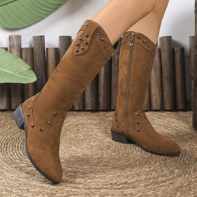 Studded Mid-Calf Boots with Side Zipper Closure