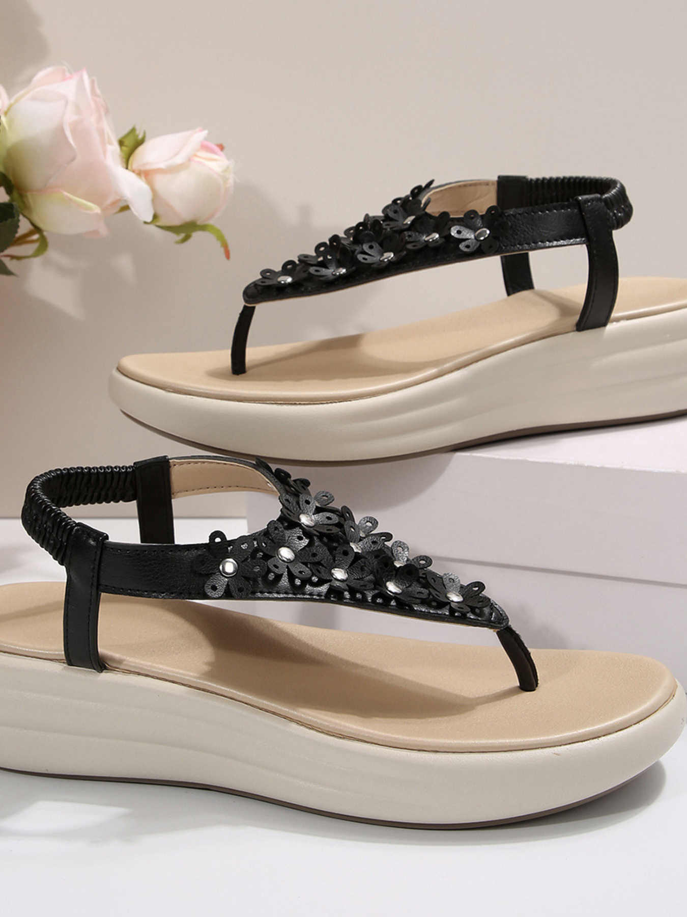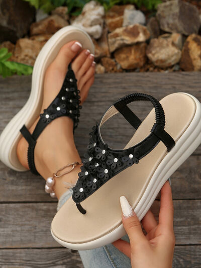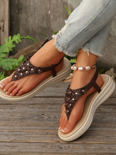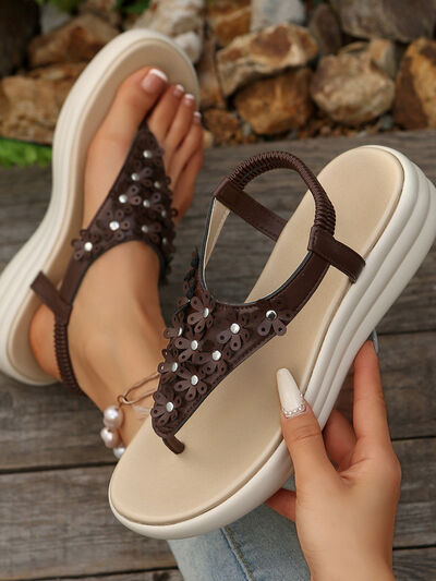 Studded T-Strap Wedge Sandals