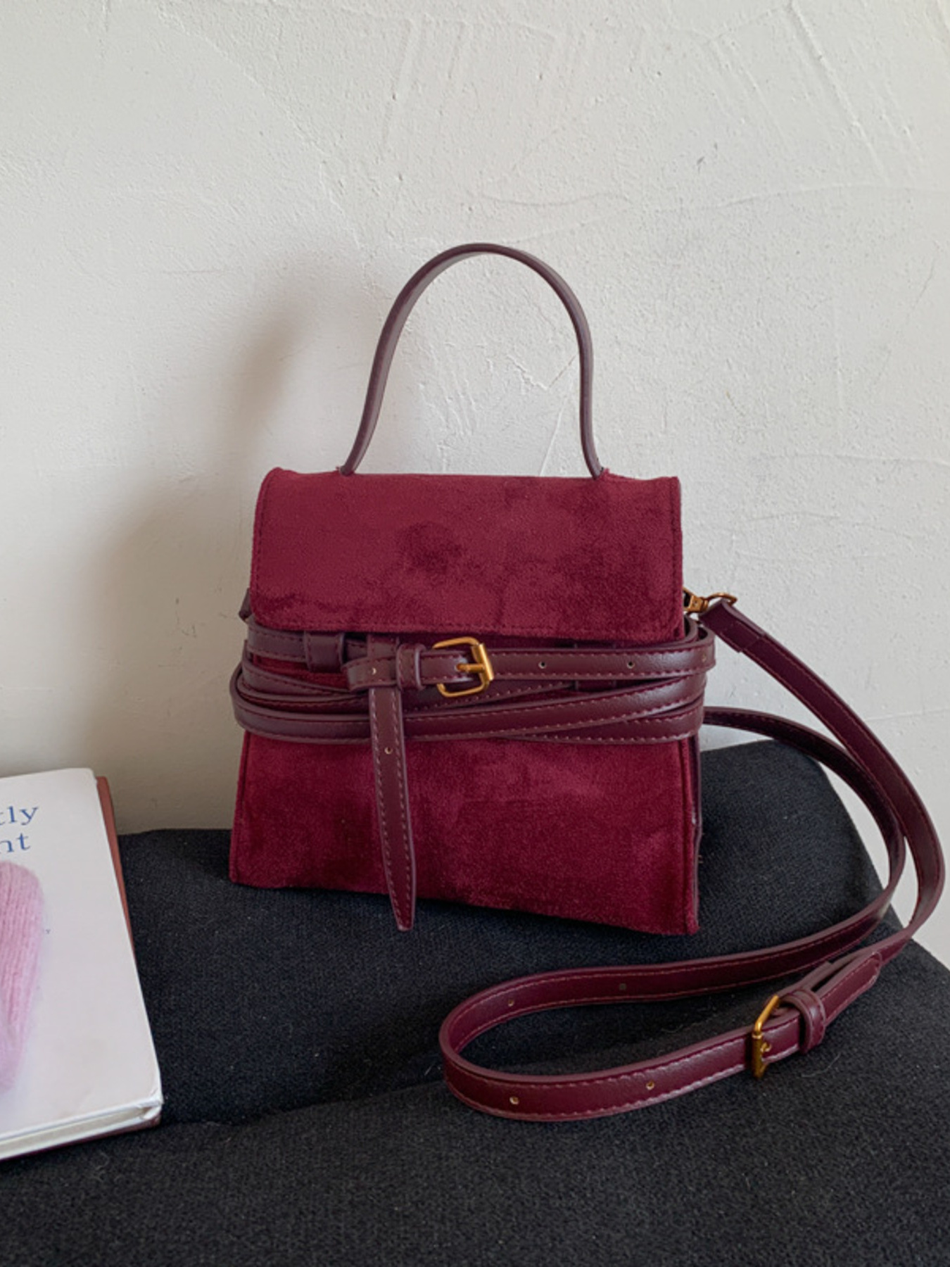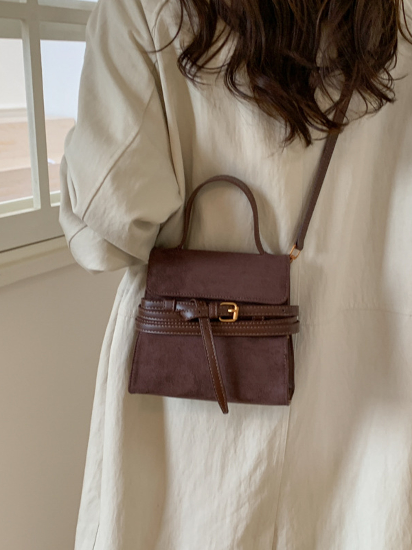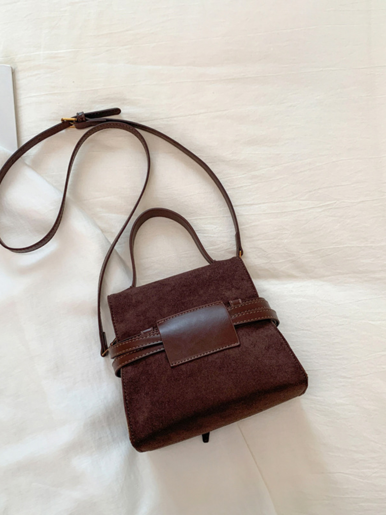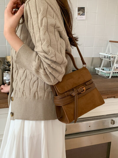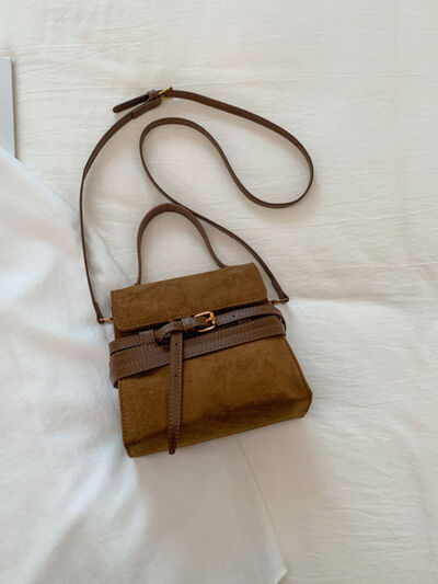 Suede Buckle Decor Crossbody Bag