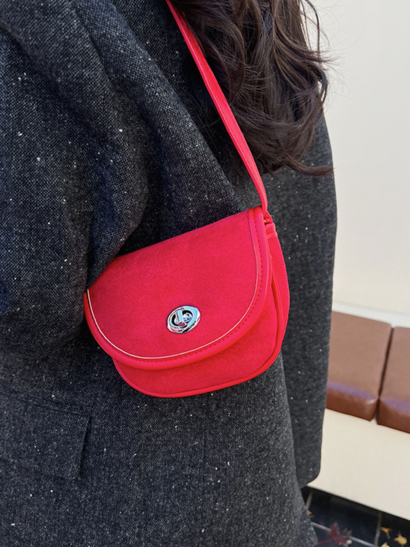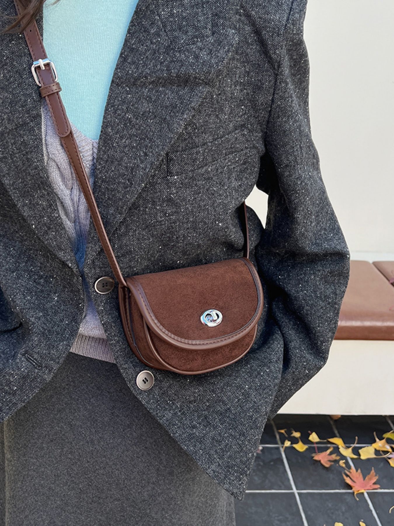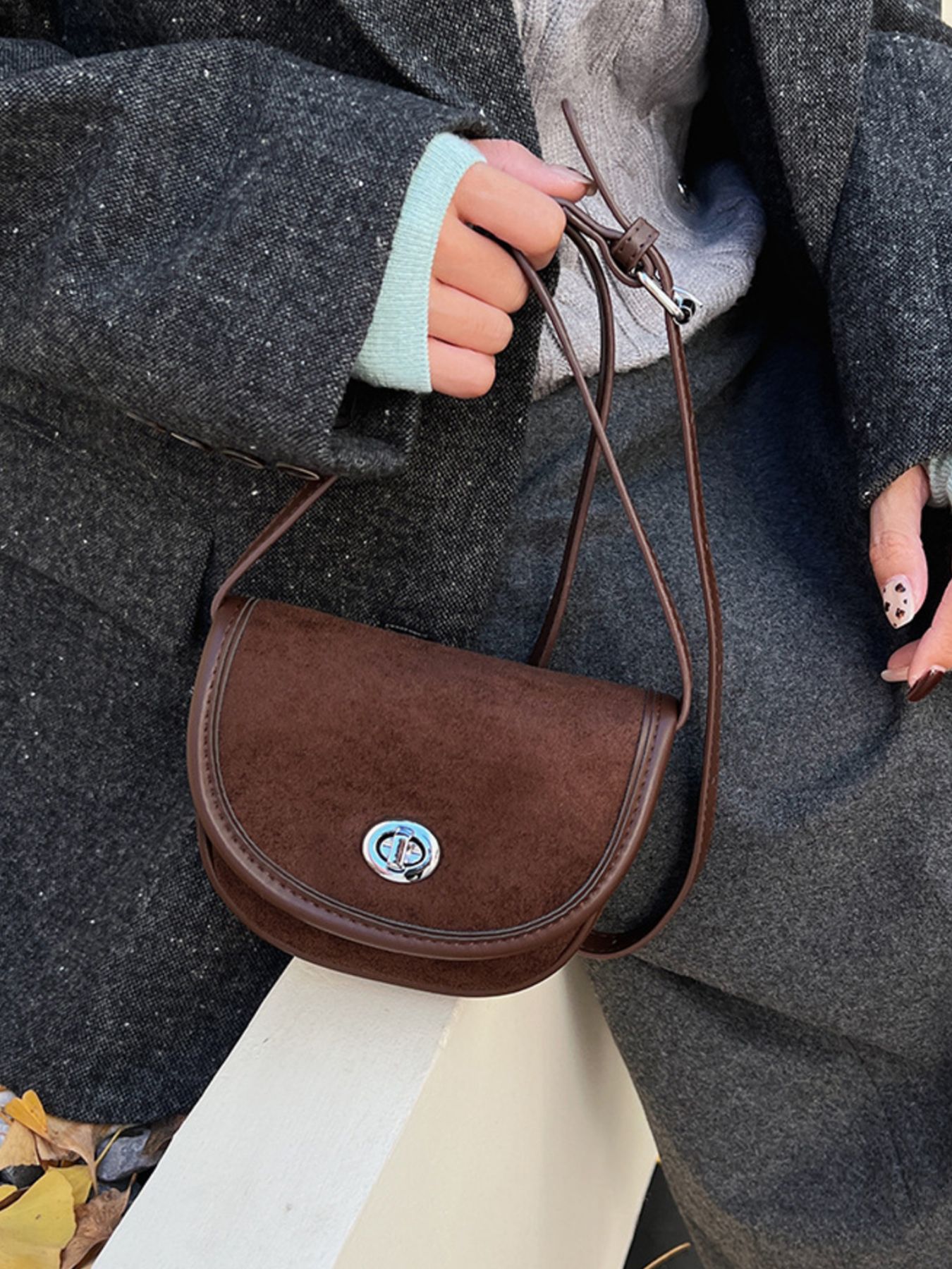 Suede Flap Crossbody Bag