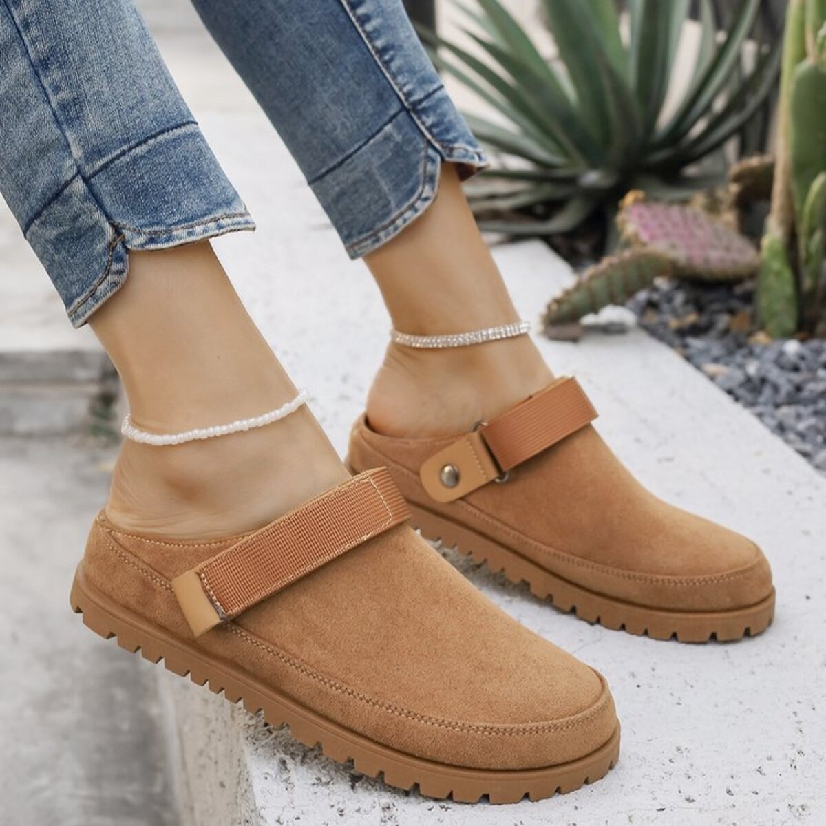 Suede Slip-On Mule Loafers with Adjustable Strap