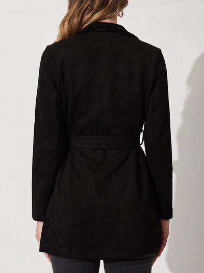 Suede Tie Waist Long Sleeve Outerwear