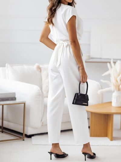 Surplice Cap Sleeve Tie Waist Jumpsuit