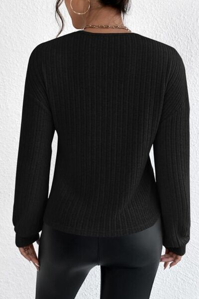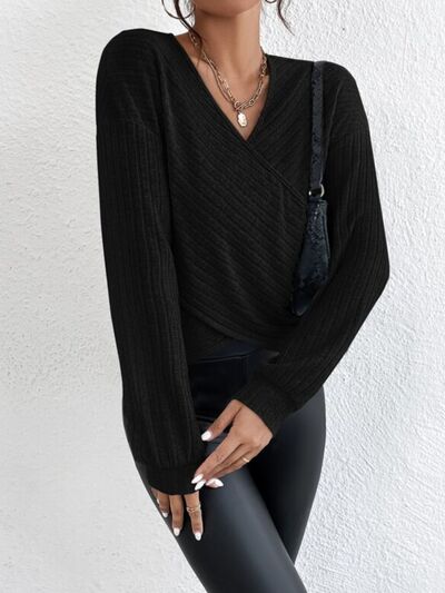 Surplice Dropped Shoulder Long Sleeve T-Shirt