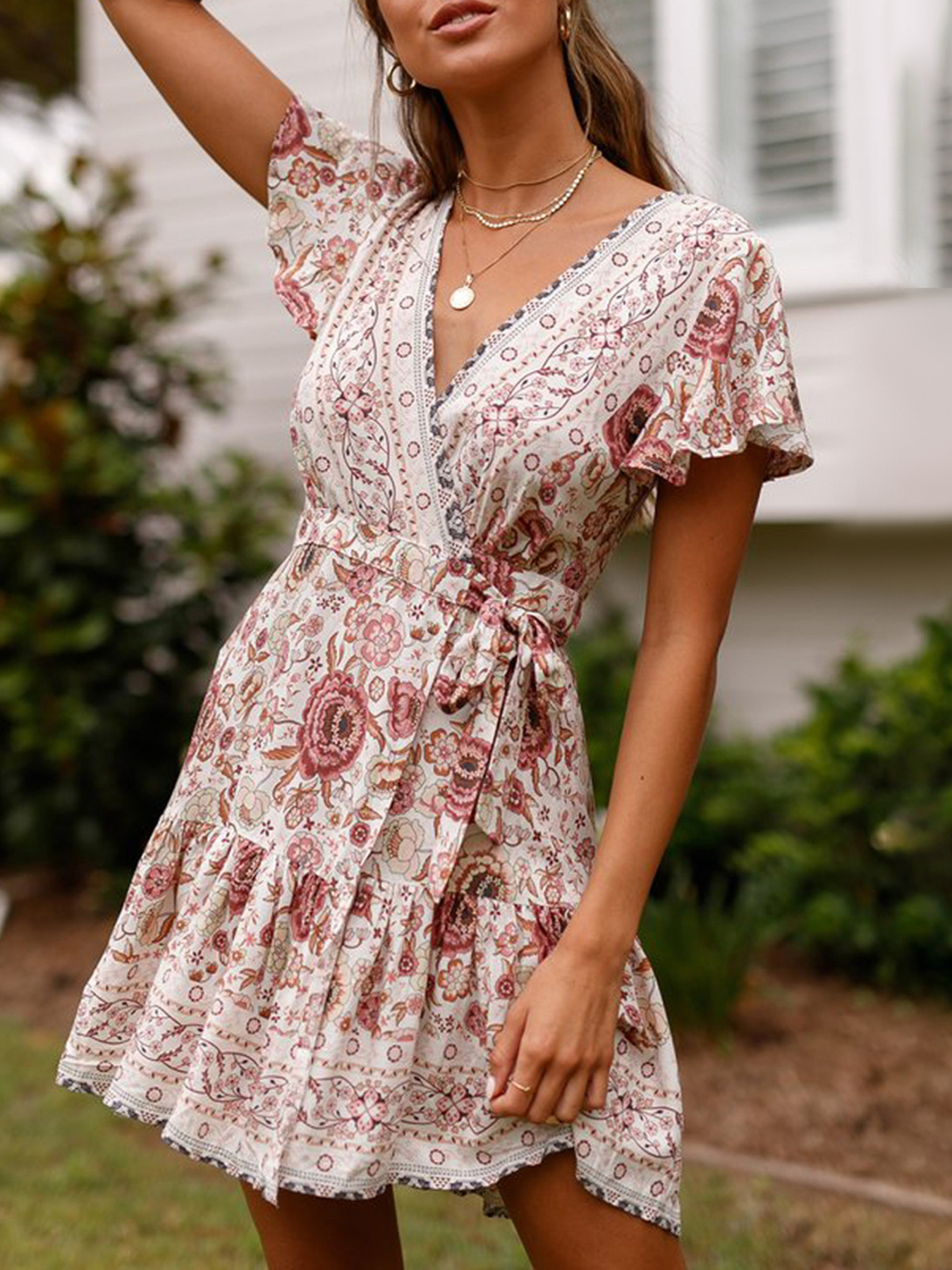 Surplice Flutter Sleeve Mini Dress