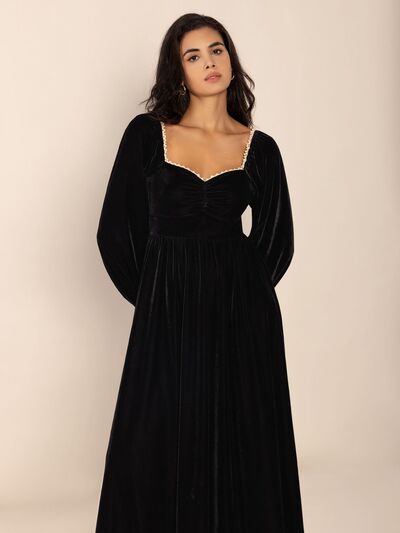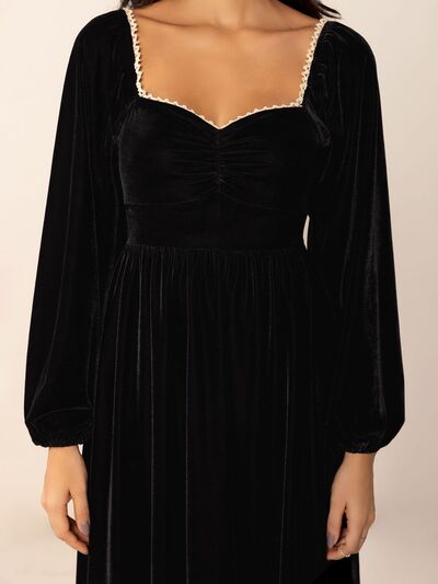 Sweetheart Neck Long Sleeve Midi Dress