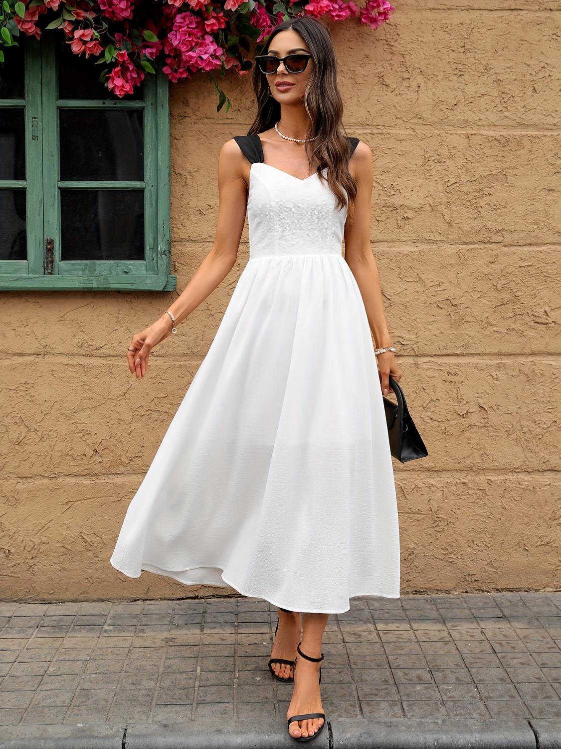 Sweetheart Neck Wide Strap Midi Dress
