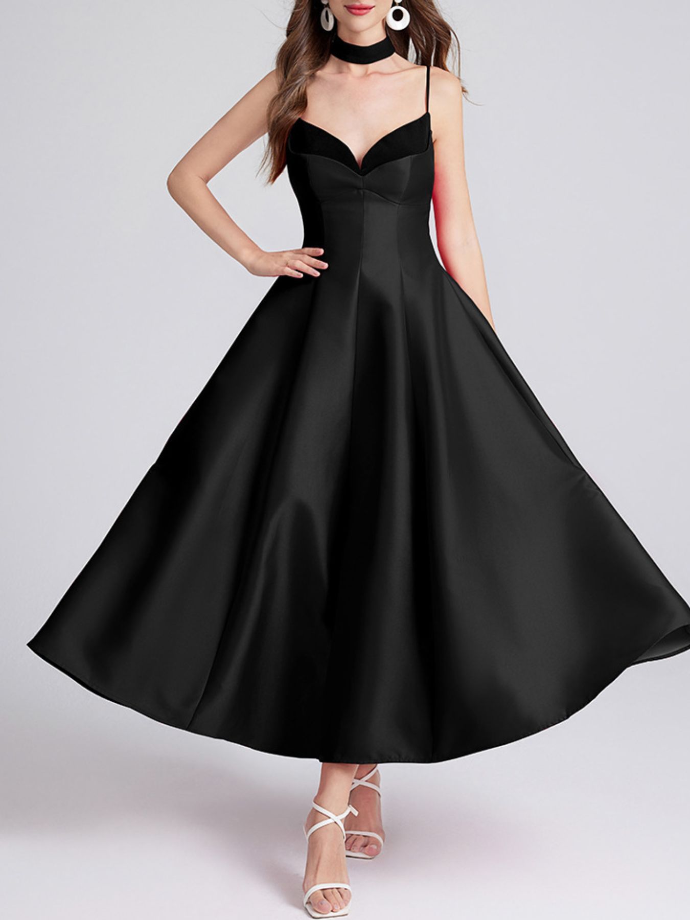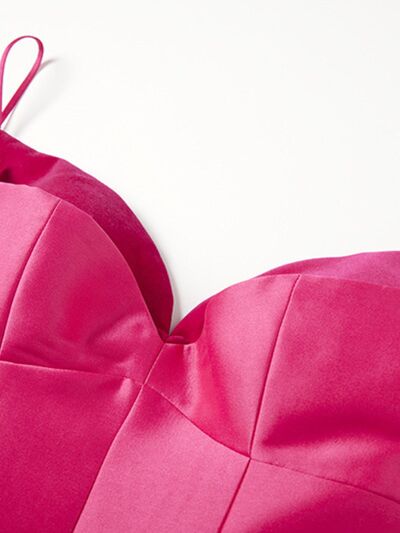 Sweetheart Spaghetti Strap Midi Dress with Collar