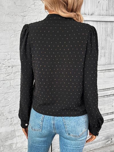 Swiss Dot Mock Neck Long Sleeve Blouse