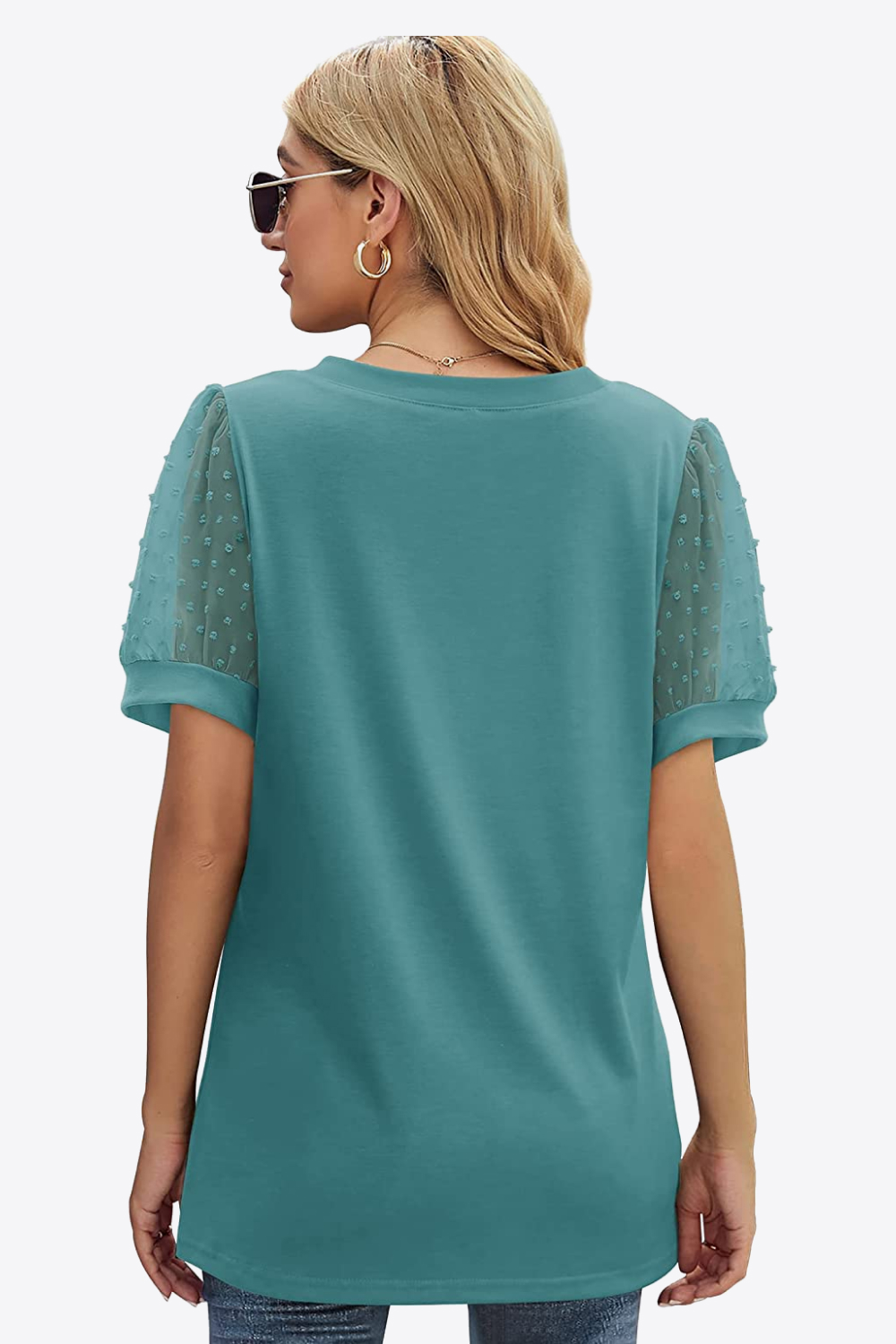 Swiss Dot Puff Sleeve V-Neck Tee