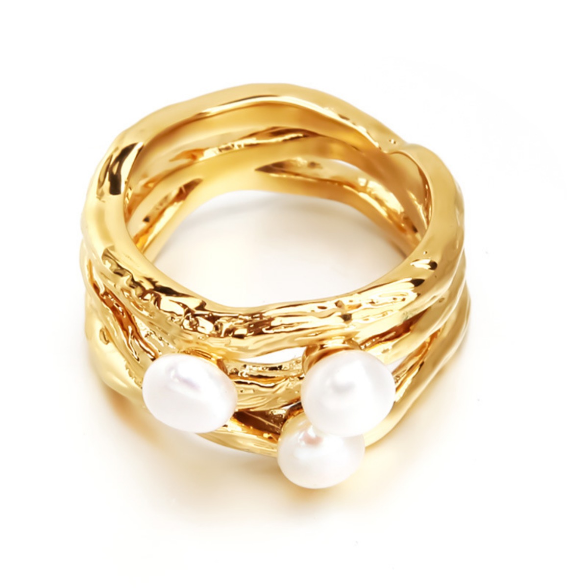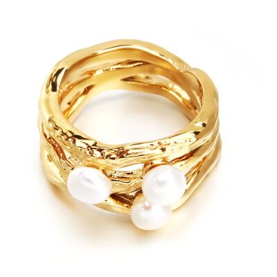 Synthetic Pearl 18K Gold-Plated Copper Ring