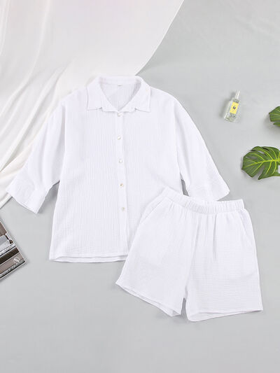 Texture Button Up Shirt and Shorts Set