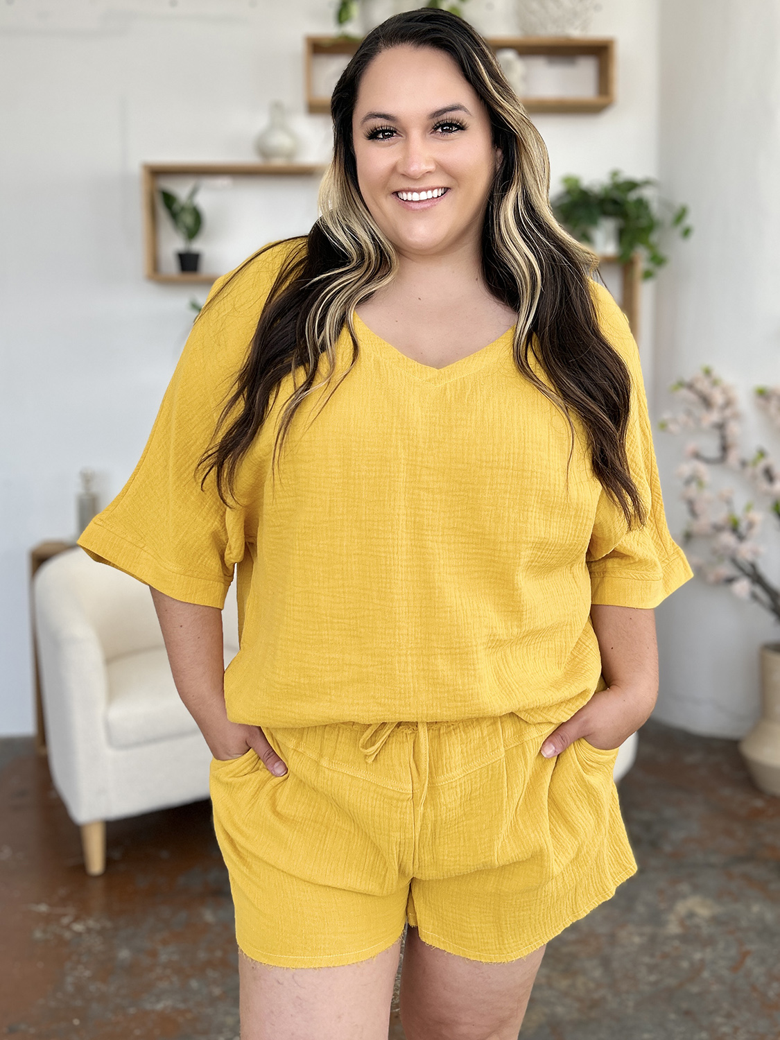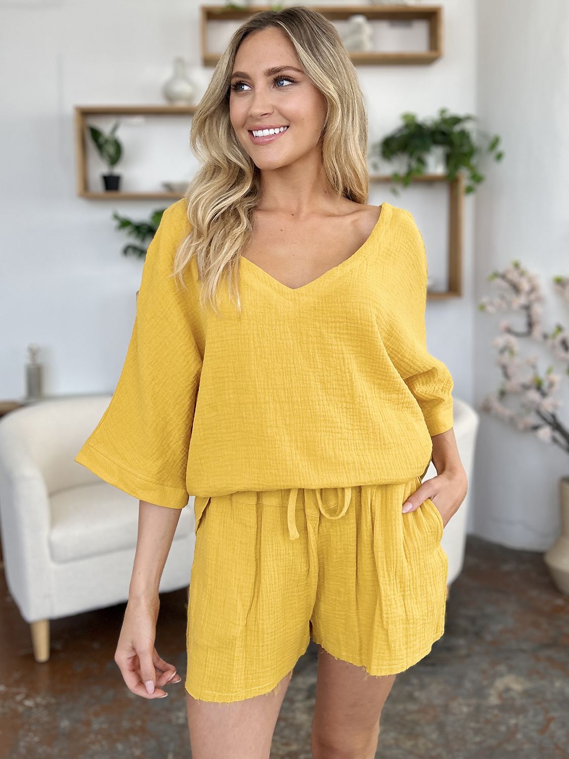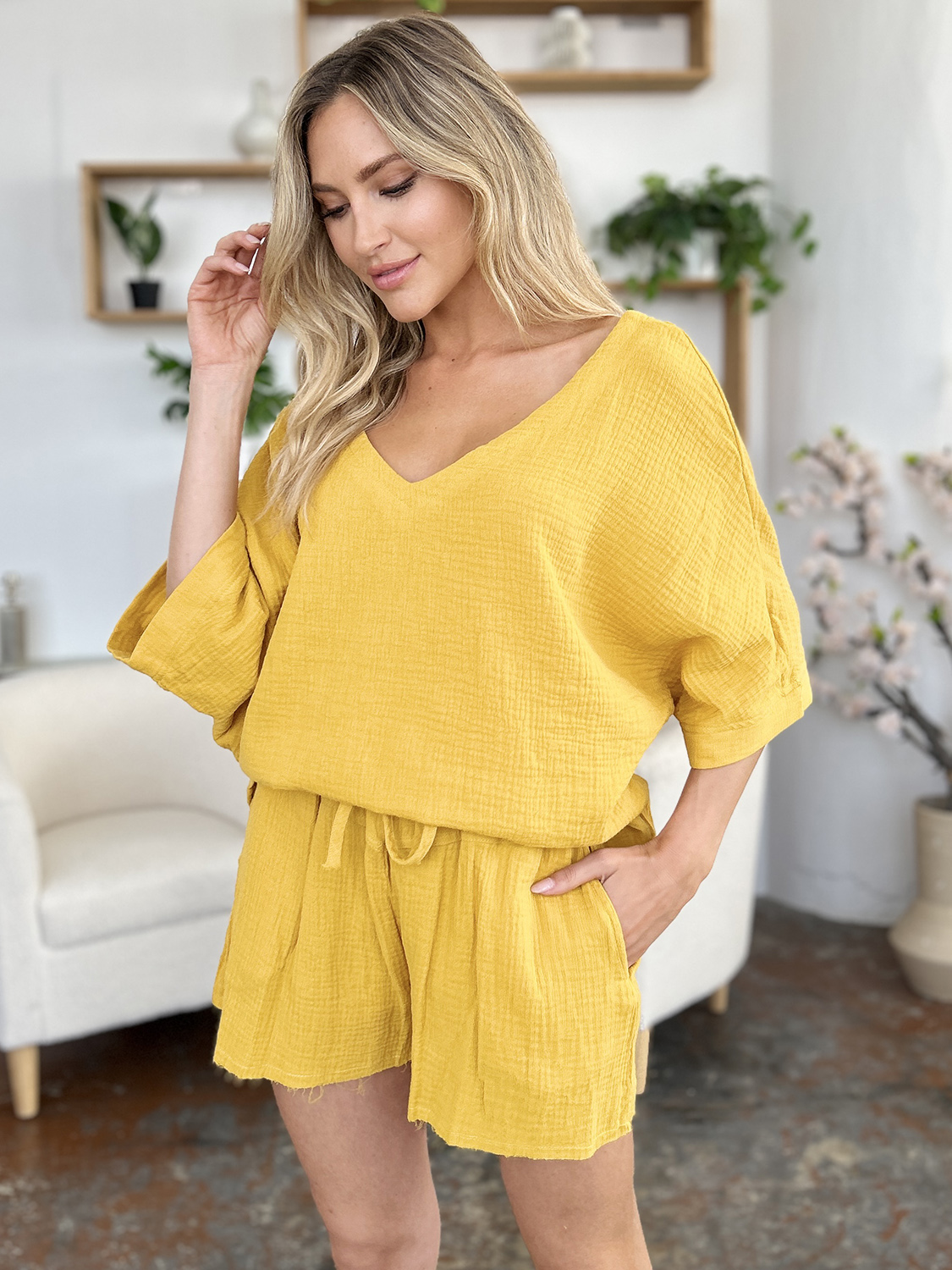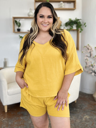 Texture Half Sleeve T-Shirt and Drawstring Shorts Set