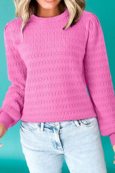 Texture Round Neck Long Sleeve Sweater