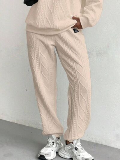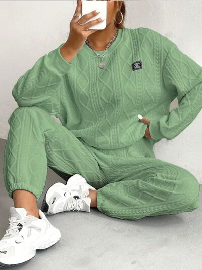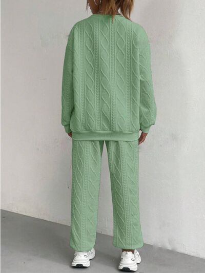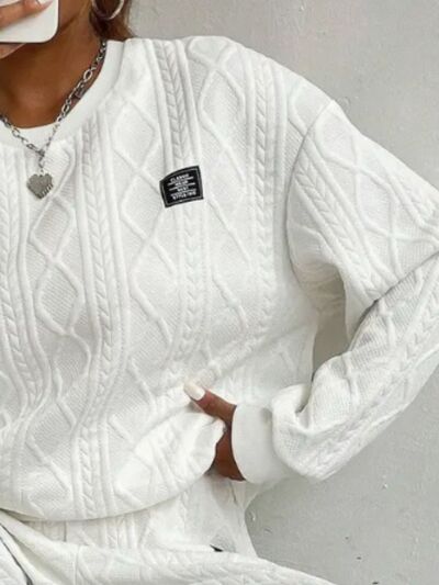 Texture Round Neck Long Sleeve Top and Pants Set