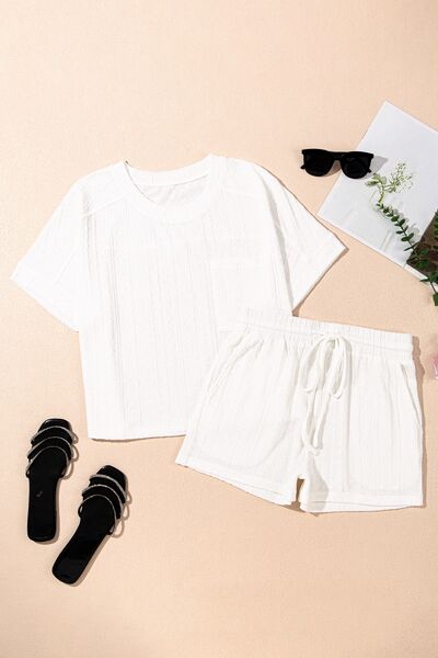 Texture Short Sleeve Top and Shorts Set