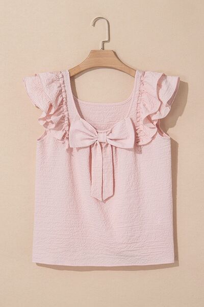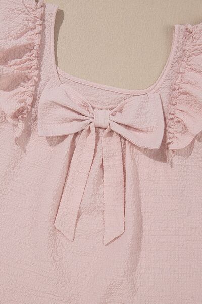 Textured Bow Knot Frilled Butterfly Sleeve Blouse
