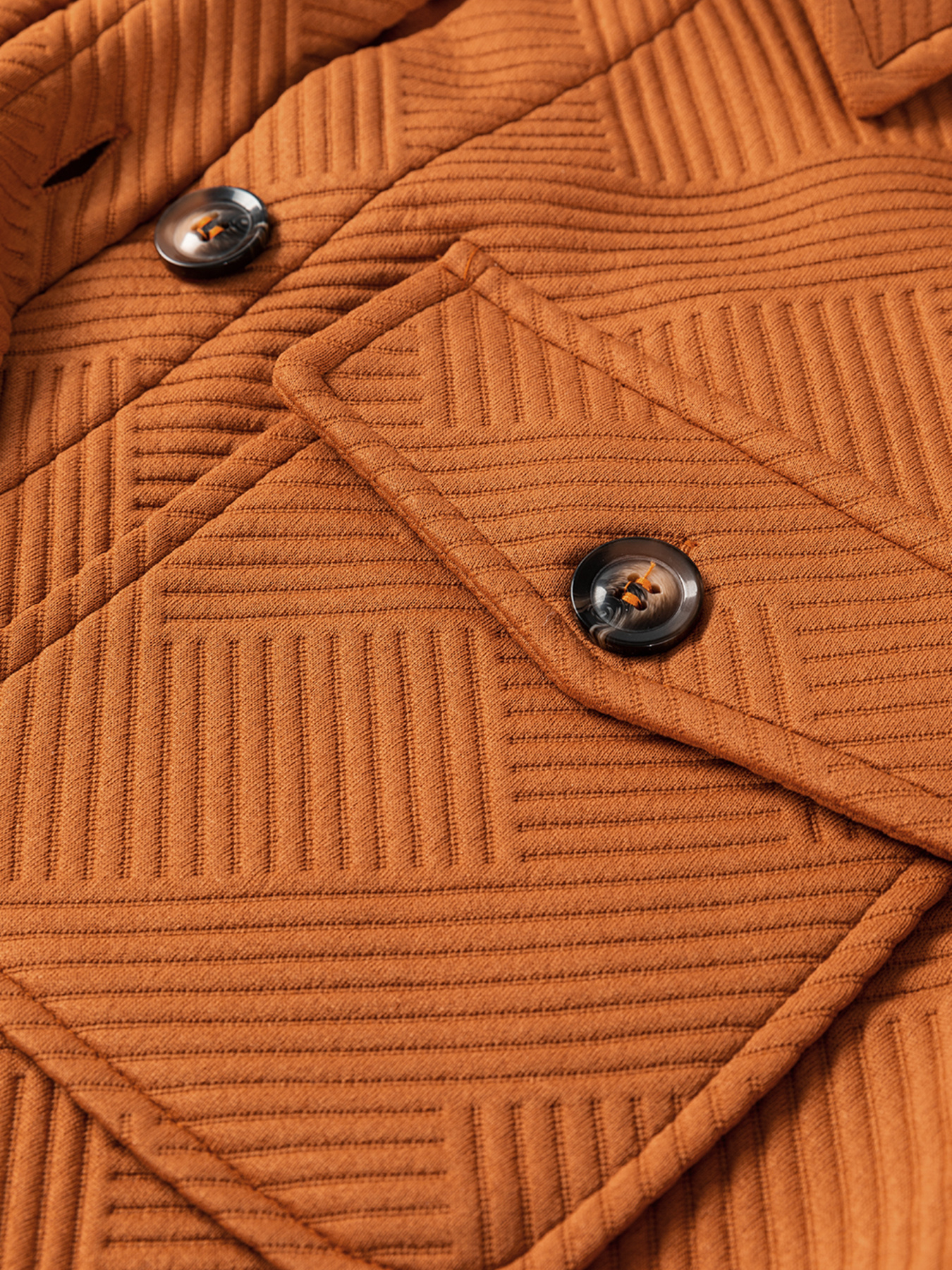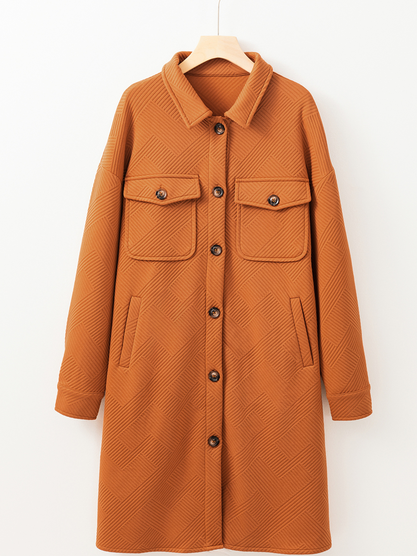 Textured Collared Drop Shoulder Buttoned Front Coat