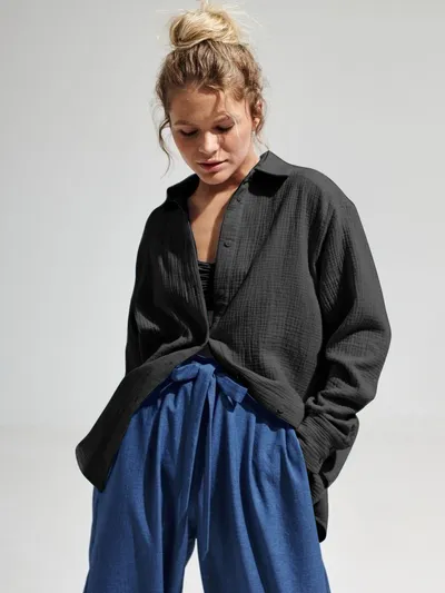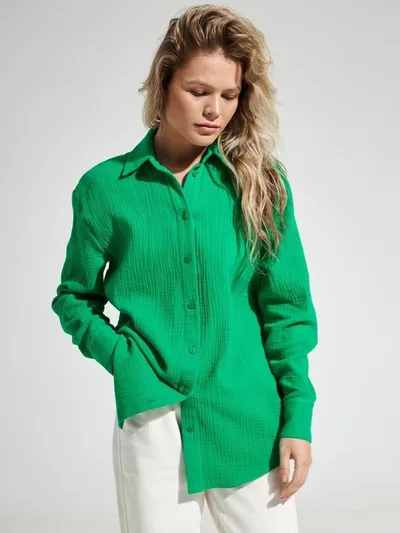 Textured Collared Neck Long Sleeve Shirt