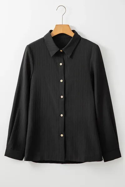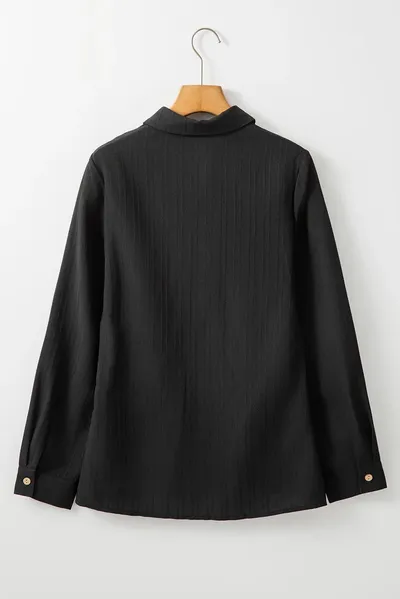 Textured Collared Neck Long Sleeve Shirt