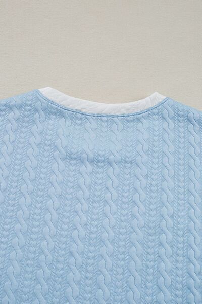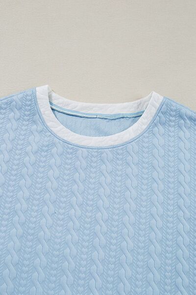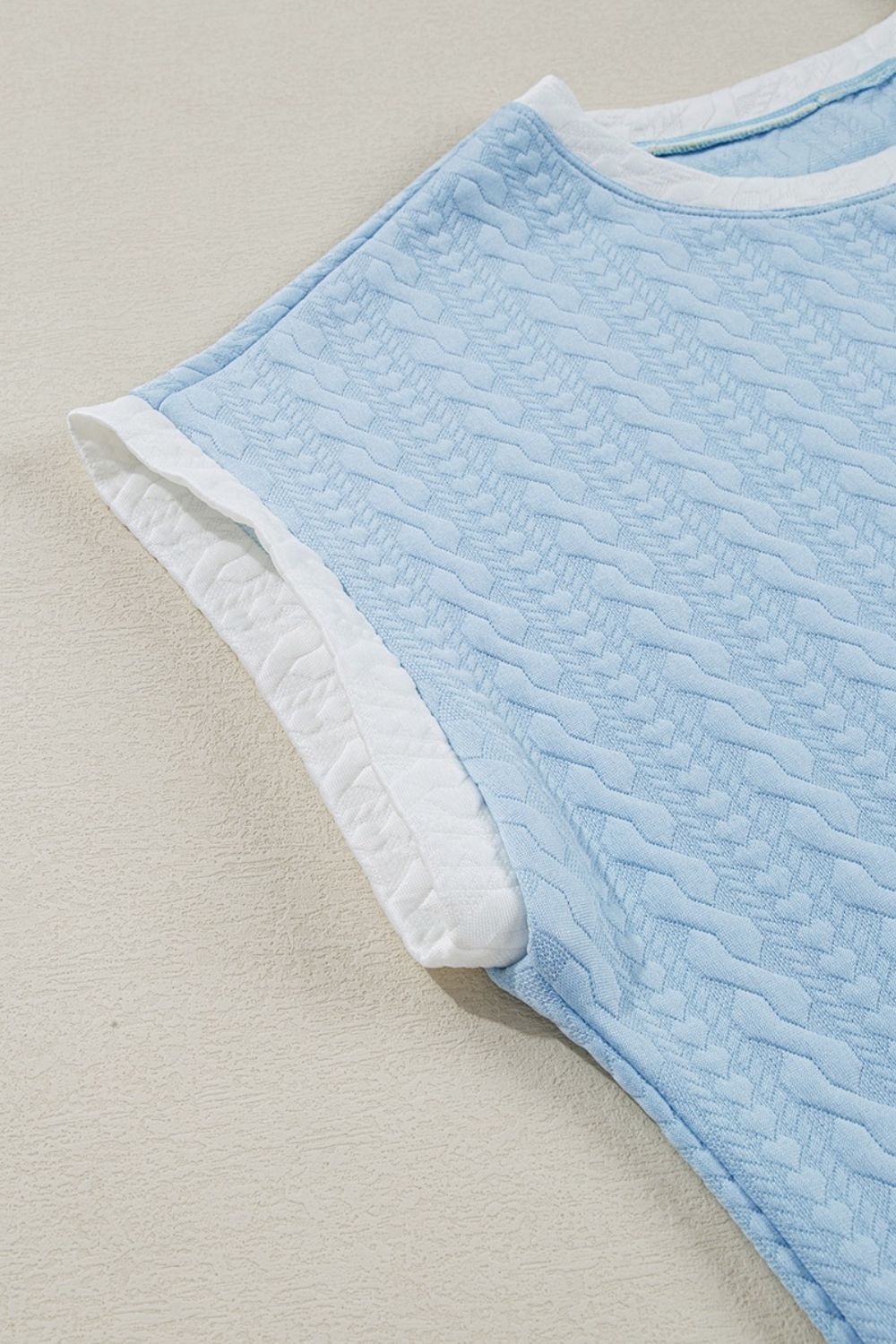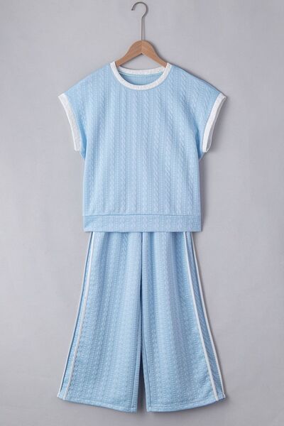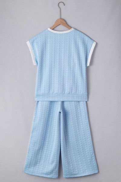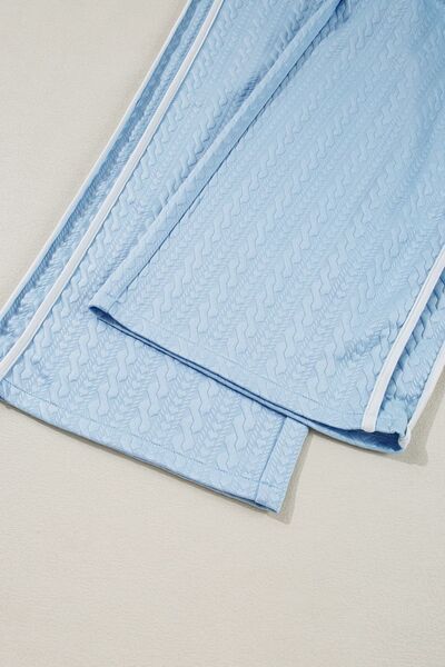 Textured Contrast Edge Top and High Waist Pants Set