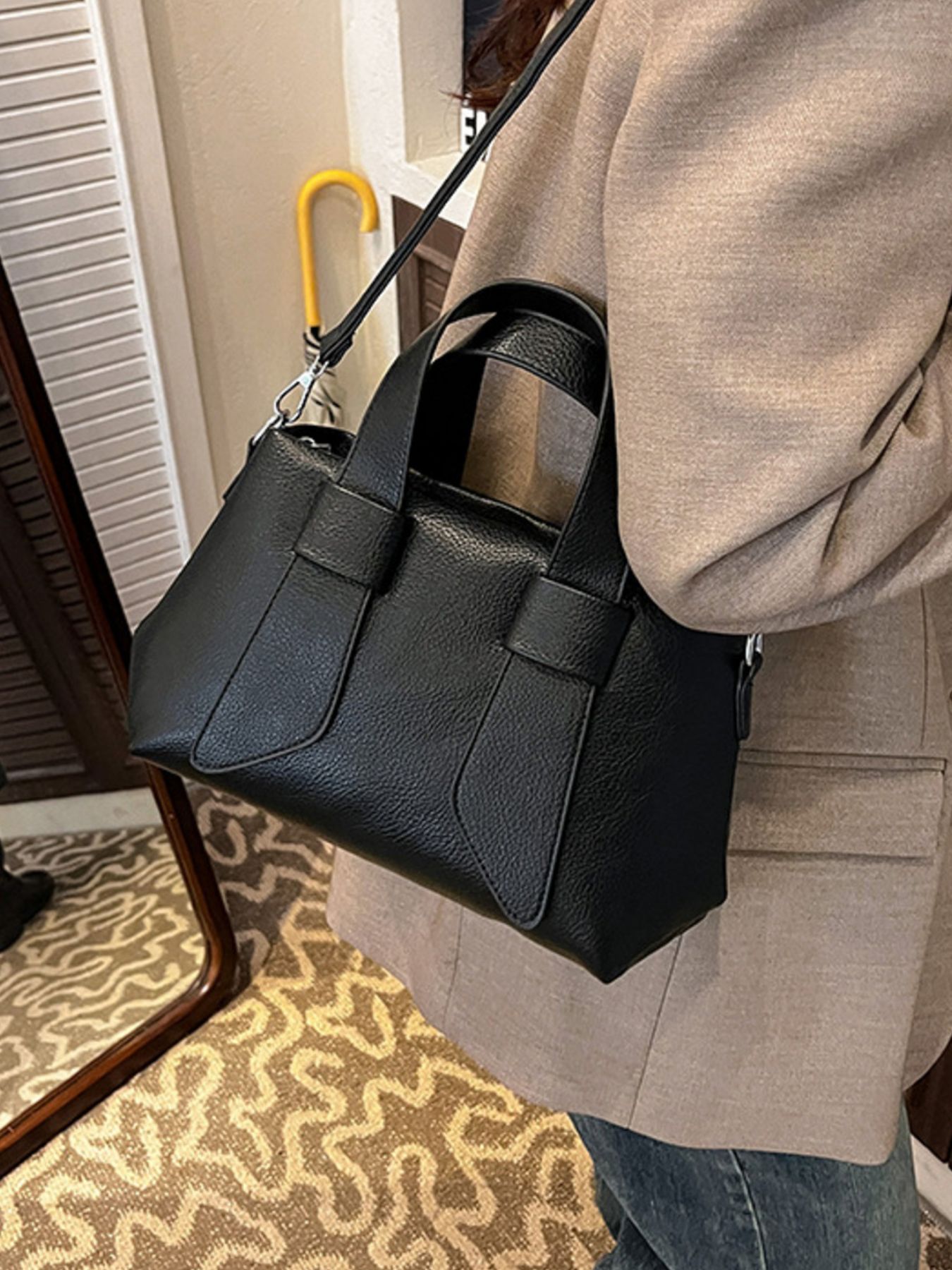 Textured Faux Leather Crossbody Bag