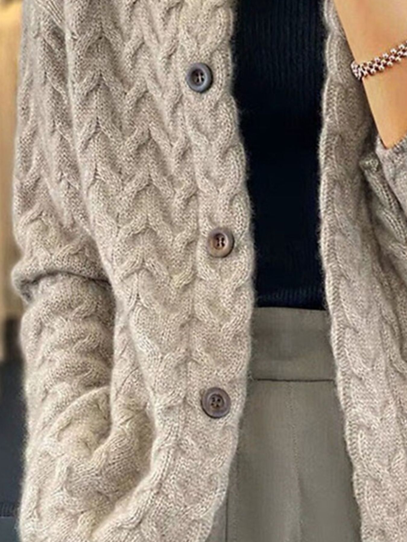 Features:Cable-Knit,Buttoned