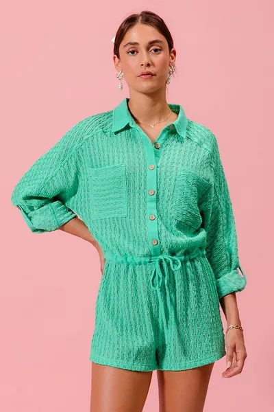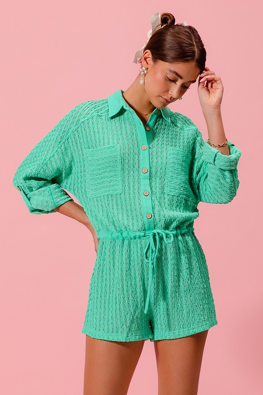 Textured Knit Button Front Romper