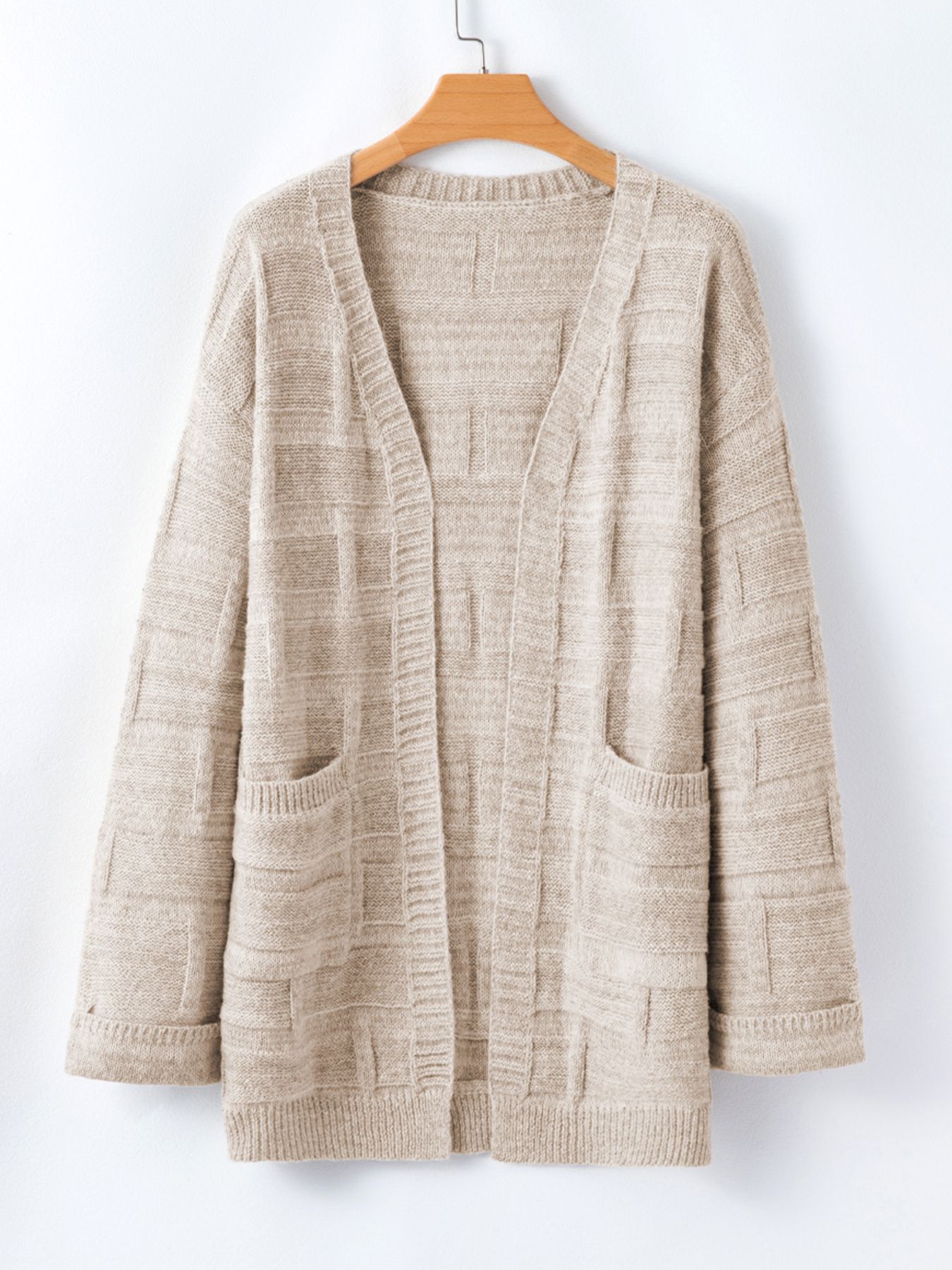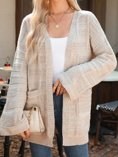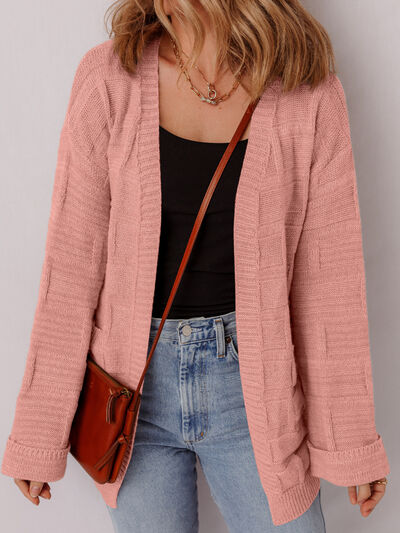 Textured Knit Open Front Cardigan with Pockets