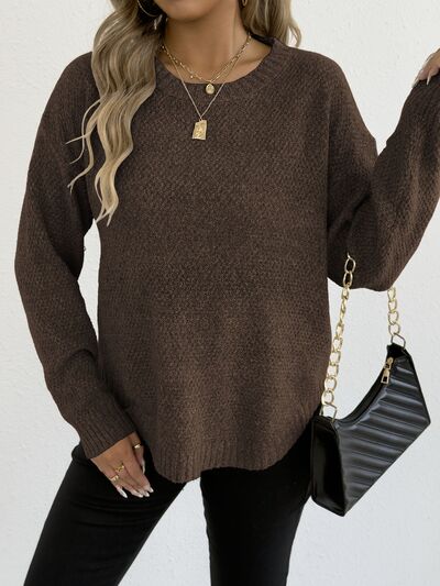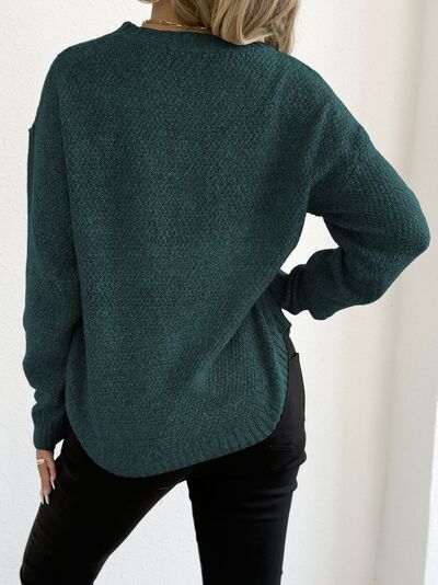 Textured Knit Relaxed Fit Round Neck Sweater