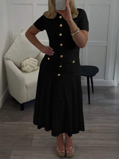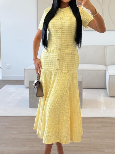 Textured Knit Short Sleeve Dress