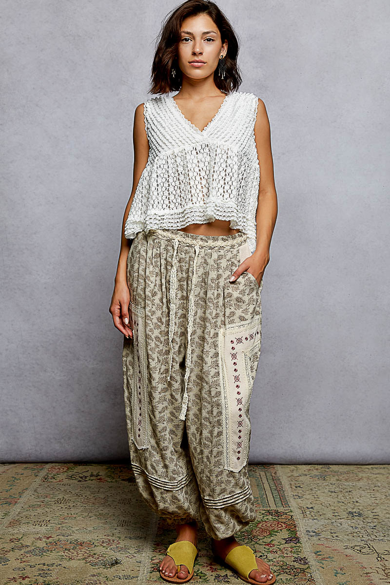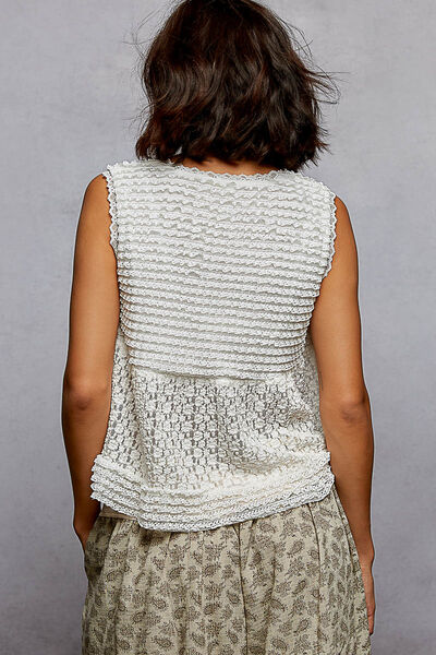 Textured Lace Cropped Tank with Trim Detail