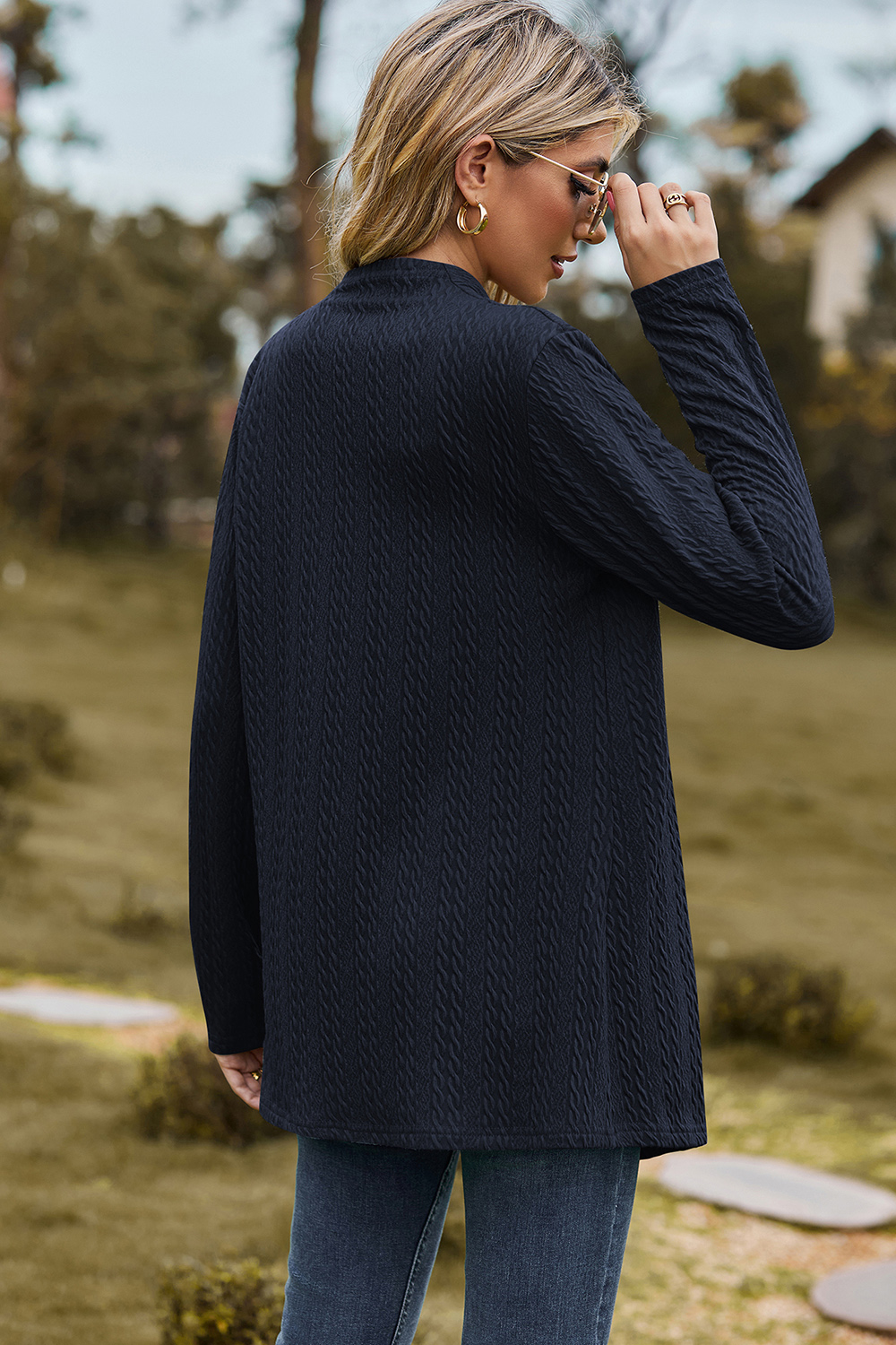 Textured Open Front Long Sleeve Cardigan