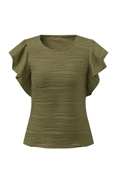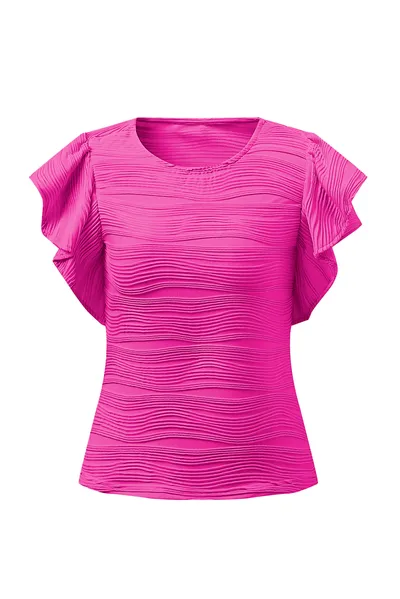 Textured Round Neck Cap Sleeve Top