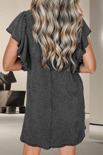 Textured Ruffled Round Neck Cap Sleeve Dress