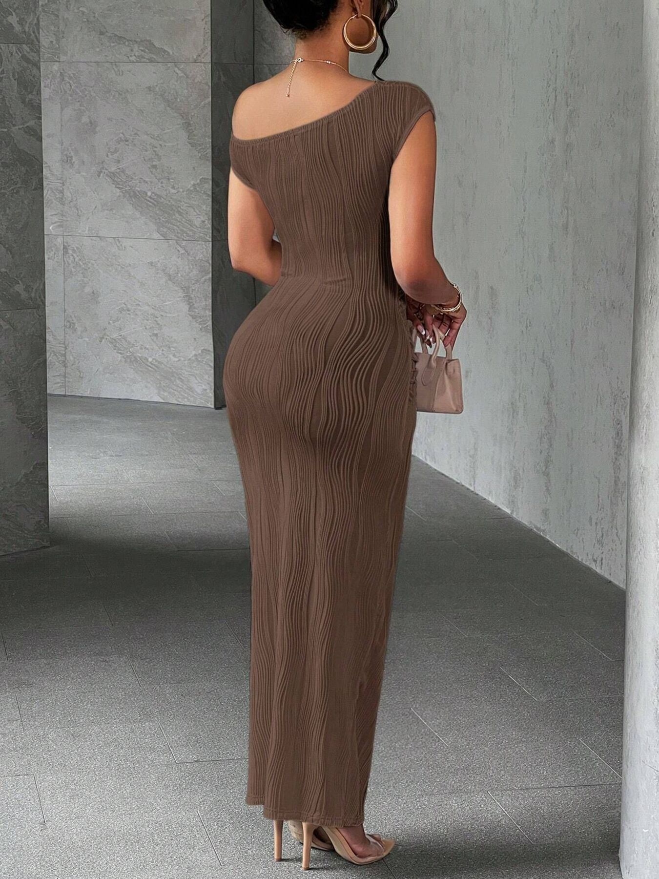 Textured Single Shoulder Bodycon Maxi Dress