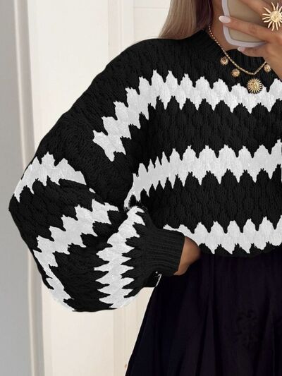 Textured Striped Round Neck Sweater