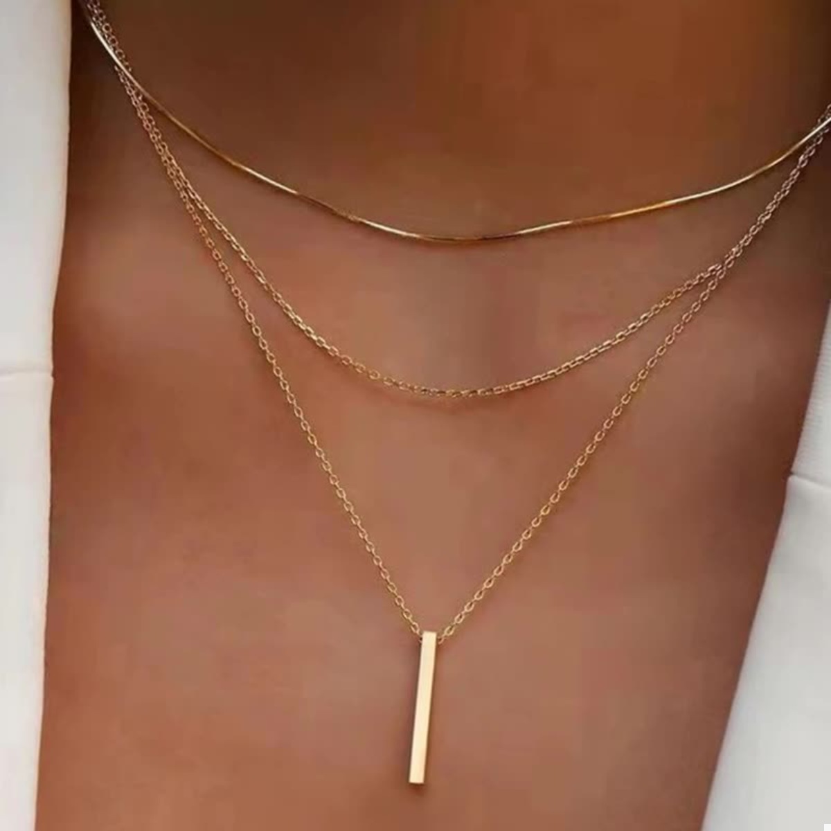 Three Layered Bar Pendant Necklace