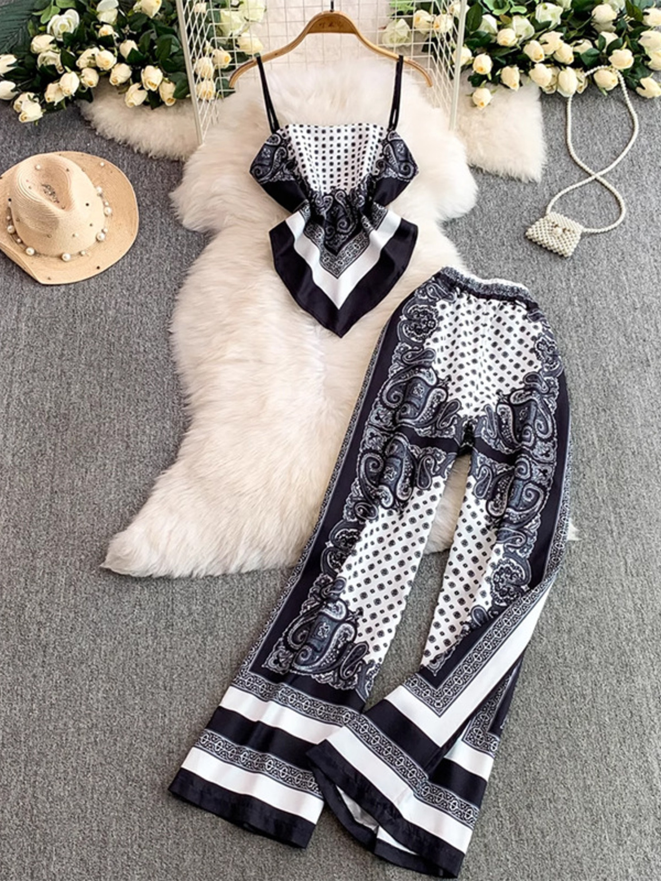 Tie Back Printed Cami and Pants Set