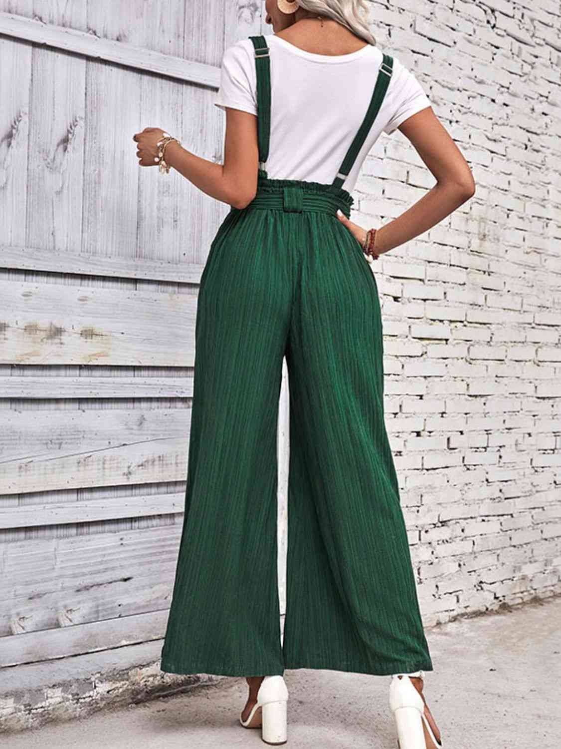 Tie Belt Wide Leg Overalls