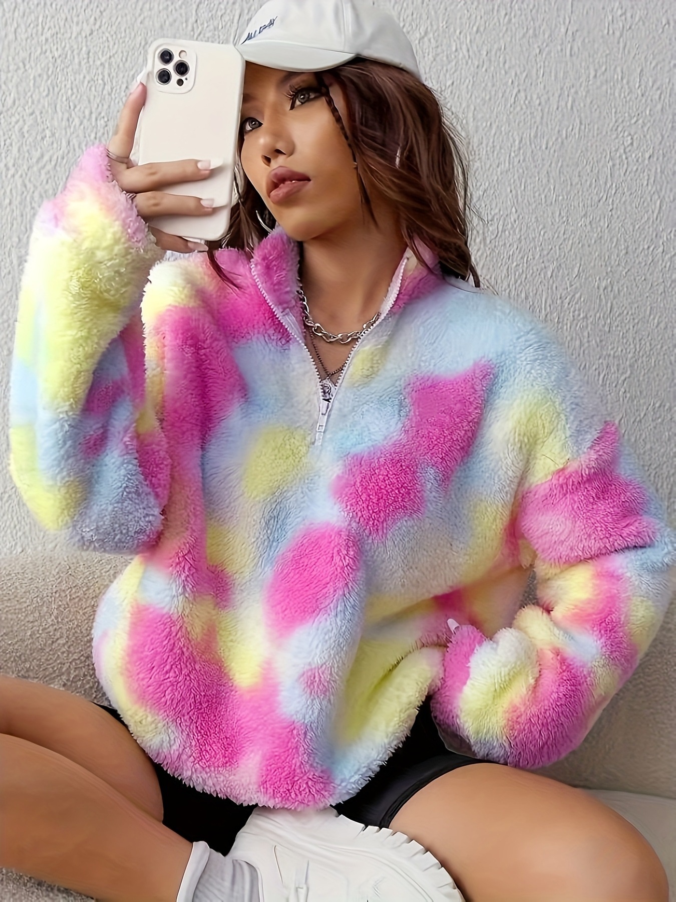 Tie-Dye Fuzzy Quarter Zip Sweatshirt