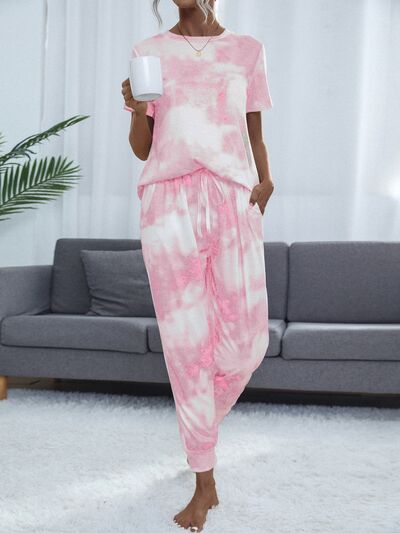 Tie-Dye Round Neck Short Sleeve Top and Pants