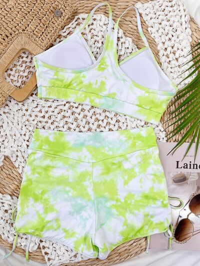 Tie-Dye Spaghetti Strap Top and Drawstring Shorts Swim Set