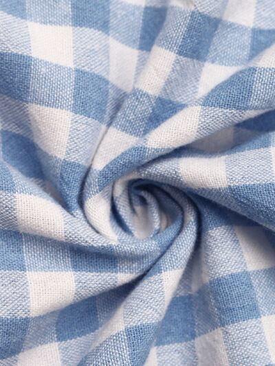Tie Front Plaid Puff Sleeve Top