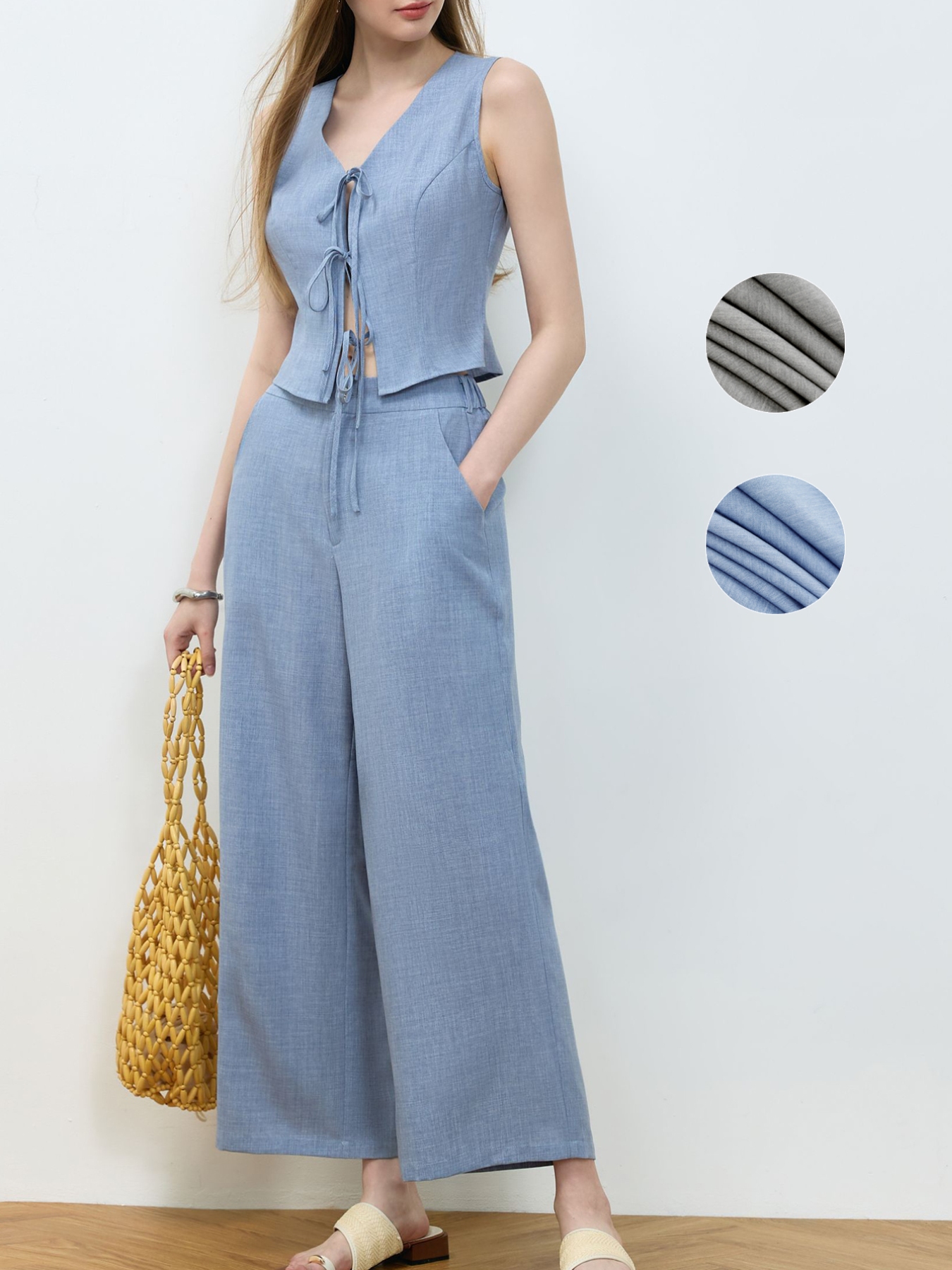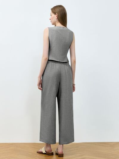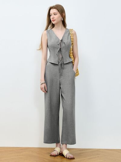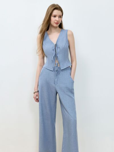 Tie Front Vest and Wide Leg Pants Set