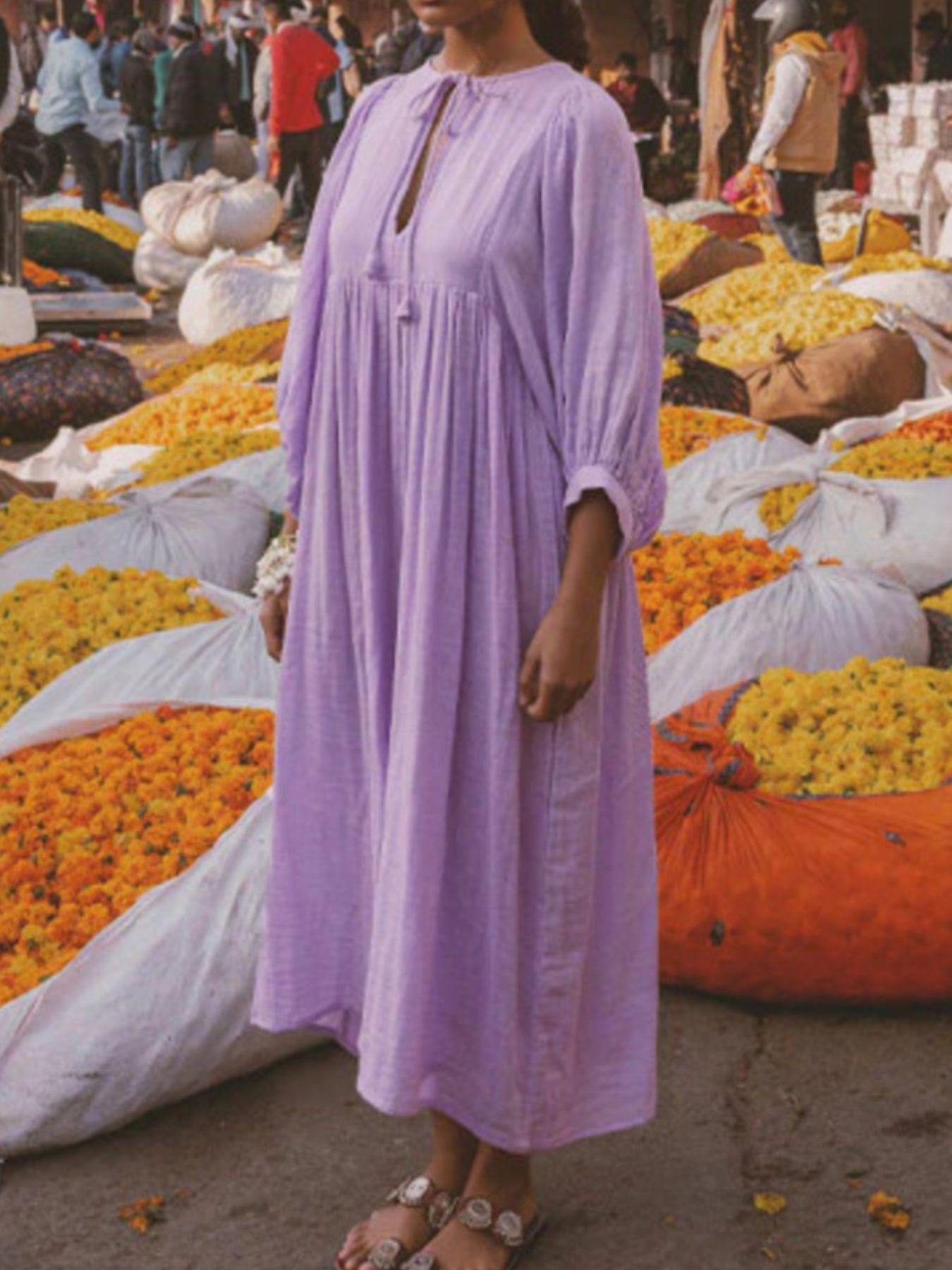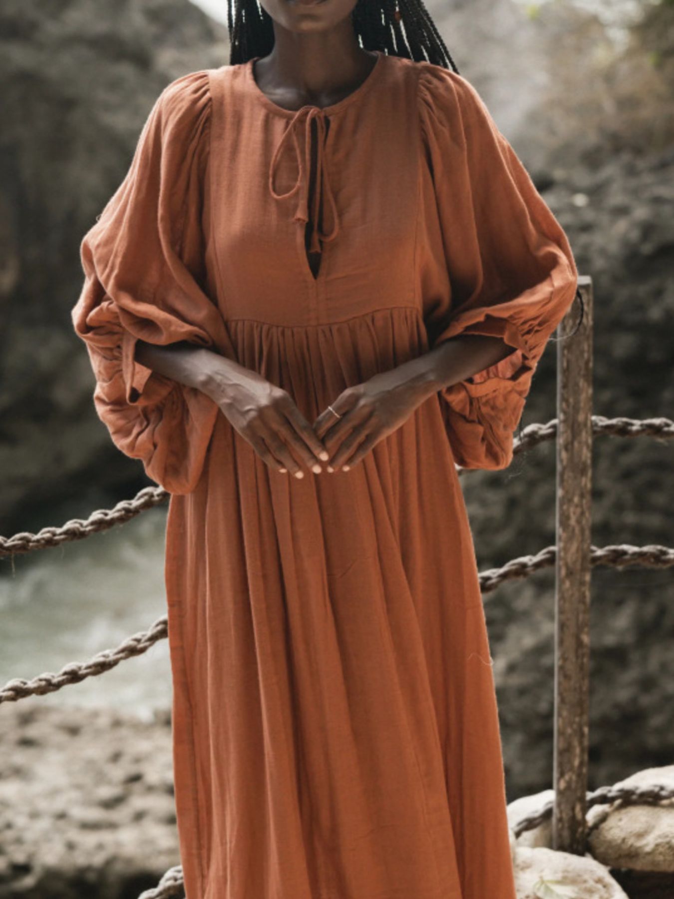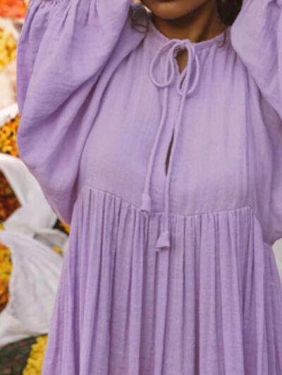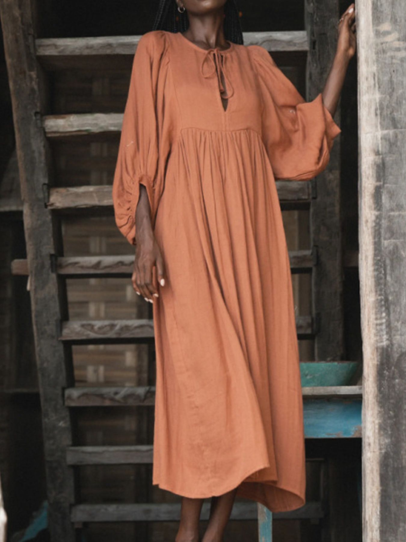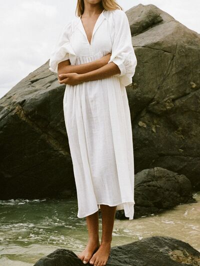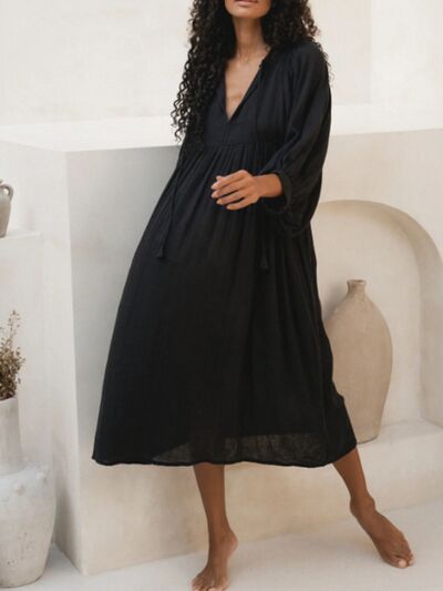 Tie Neck 3/4 Sleeve Midi Dress
