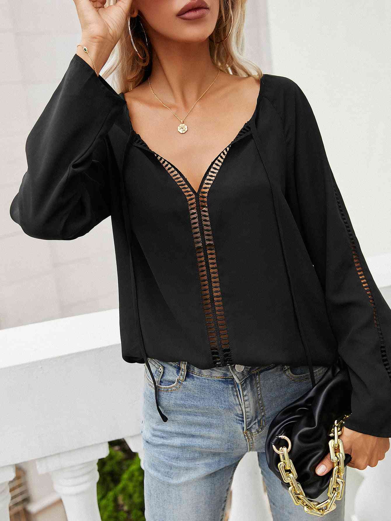 Tie Neck Long Sleeve Semi-Sheer Blouse