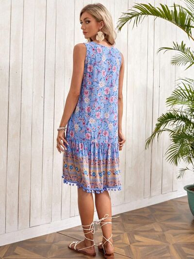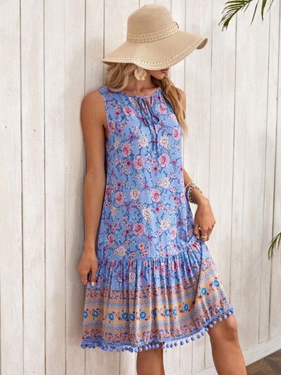 Tie Neck Sleeveless Floral Dress