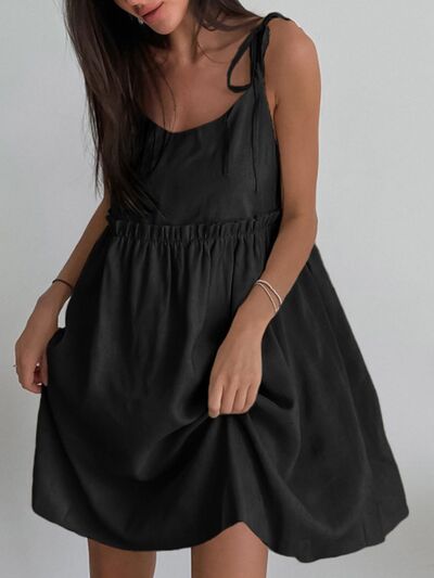 Tie-Shoulder Frill Mini Dress