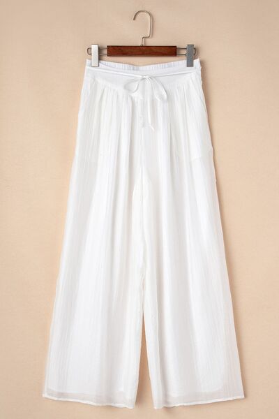 Tie Waist Pleated Wide Leg Pants